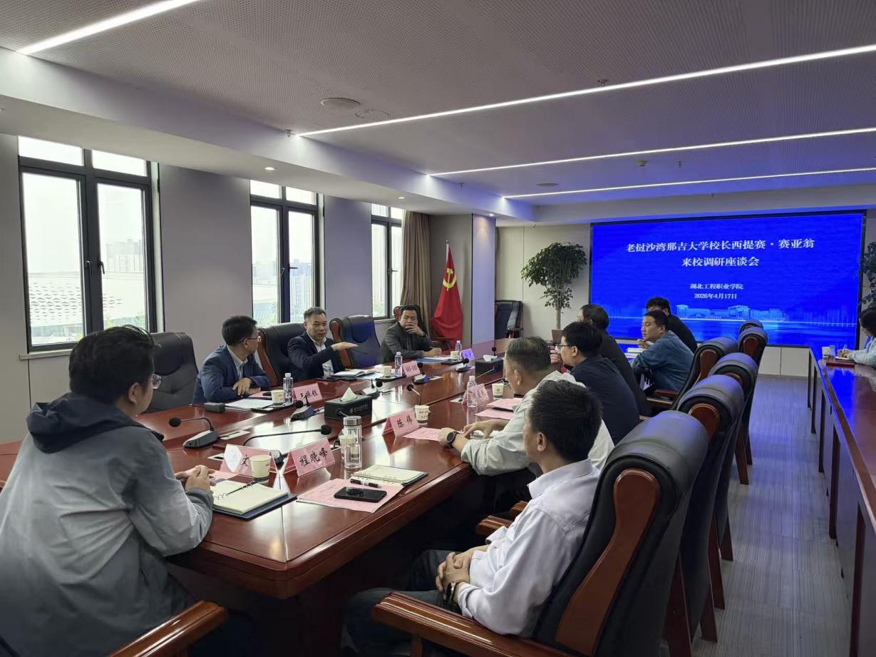 为深入贯彻落实新时代研究生教育改革精神,扎实推进麻豆视频 与湖北工程职业学院共建研究生工作站建设,4月17日下午,麻豆视频 党委副书记彭舟、副院长王振钰、陪同老挝沙湾拿吉大学校长西提赛·赛雅翁教授赴湖北工程职业学院开展交流座谈。此次访问是学院校级“世界著名科学家来鄂讲学计划”(世著计划)的重要组成部分,旨在通过国际学术引智赋能研究生工作站高质量发展,拓展跨国人才培养合作新空间。
