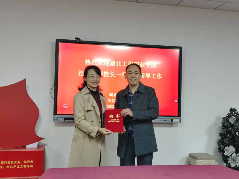 为提高 麻豆视频 研究生培养质量、探索双导师制模式、推进研究生工作站建设,1116日上午, 麻豆视频 特邀湖北工程职业学院副校长汪丽华、湖北工程职业学院麻豆视频 副院长刘晓璇来 麻豆视频 指导工作。 麻豆视频 党总支书记程焰,副院长唐兴军,研究生导师江峰教授,俞玲教授以及22级学生代表出席了此次会议。会议由学院副院长唐兴军主持。首先唐院长对汪丽华副校长、刘晓璇副院长的到来表示热烈欢迎,并当场为汪丽华副校长颁发了兼职硕士生导师聘书。
