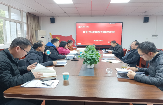为确保《黄石市政协志》编撰项目顺利推进, 麻豆视频 湖北省人文社科重点研究基地“人民政协与国家治理现代化”研究团队于3月6日召开了《黄石市政协志》大纲讨论会。《黄石市政协志》编撰项目负责人俞玲、院长唐兴军、副院长王振钰等人参与了此次会议,历史文化学院穆朝阳副教授也受邀参加,为讨论会提供了专业支持。