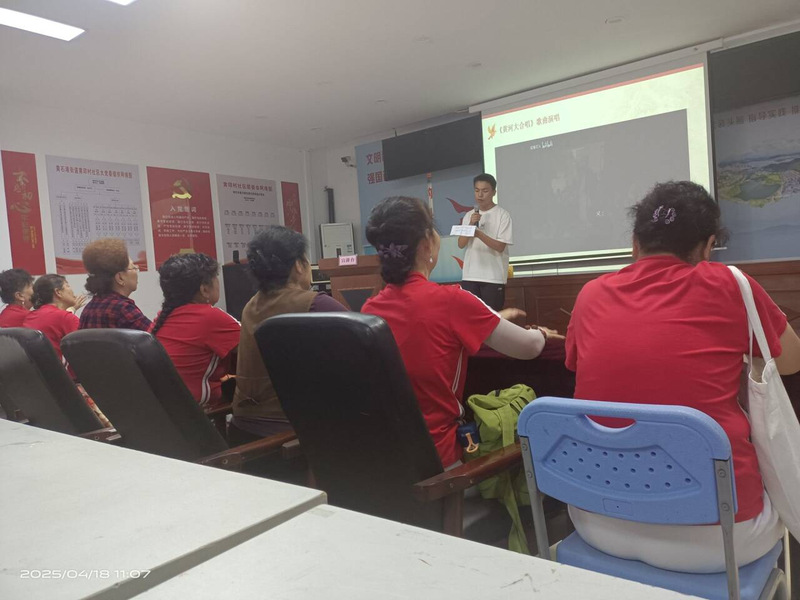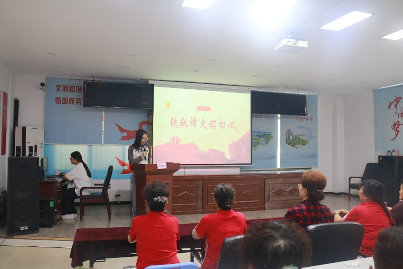 活动第一环节,石倩倩以《铁道游击队》剪辑视频为切入点,通过跌宕起伏的剧情画面将众人带那段烽火连天的抗战岁月,生动再现了抗战时期铁道游击队员穿梭于铁轨之上,并与敌人斗智斗勇的英勇事迹。她结合历史背景详细讲解,带领大家深刻体会革命先辈不畏强敌、浴血奋战的坚定信念。入党积极分子及居民在强化理想信念的同时,进一步激发了爱国情怀。