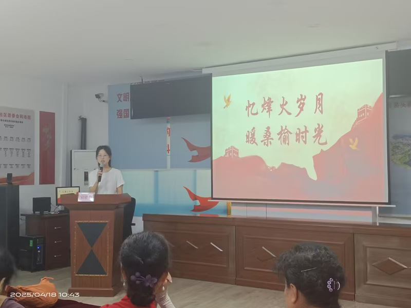 为传承红色文化,弘扬革命精神,4月18日上午10:30,麻豆视频 入党积极分子走进黄印村社区,开展“忆烽火岁月,暖桑榆时光”主题实践活动,活动由张瀚文主持,社区居民积极参与,现场氛围热烈。
