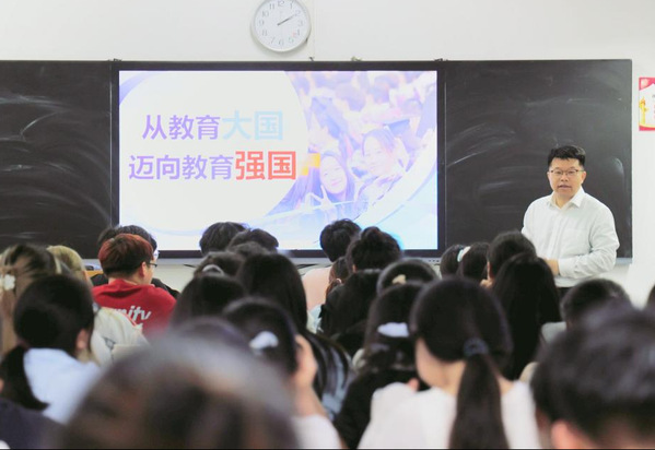 本轮授课以《从教育大国迈向教育强国》为题,介绍了《教育强国建设规划纲要(2024—2035 年)》对全面推进教育强国建设的战略任务和重大举措,从“坚实基础 战略支撑”“蓬勃发展 优质均衡”“深化改革 系统推进”三个方面,与师生重点探讨了“为什么要建设教育强国”“怎么能建设教育强国”“怎么样建设教育强国”等重要问题。同学们纷纷表示,通过课程学习深刻认识到教育强国建设的重要性,今后将以实际行动践行责任与担当,为实现中华民族伟大复兴的中国梦贡献自己的力量。