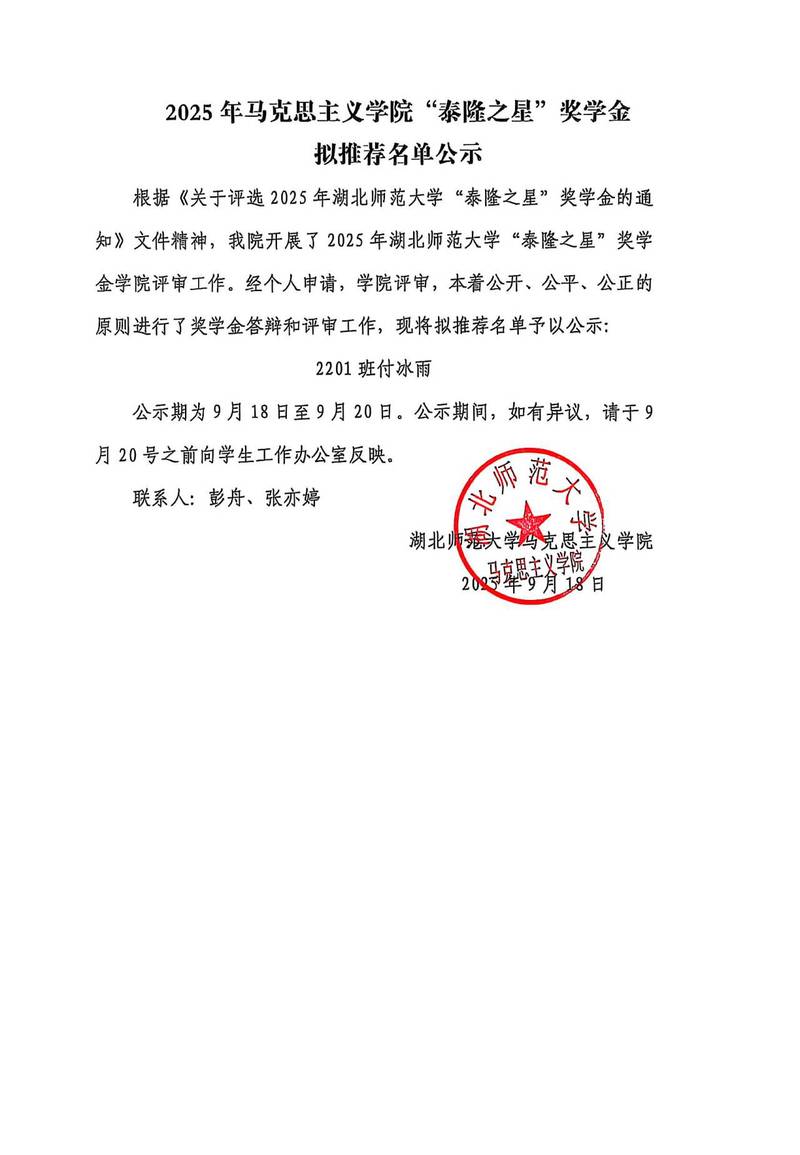 2025年麻豆视频 “泰隆之星”奖学金拟推荐名单公示