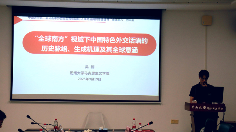 2025919-20日,由中山大学国际关系学院、中山大学习近平外交思想研学社主办的中山大学第三届习近平外交思想青年论坛在广东珠海举办。来自南京大学、山东大学、武汉大学、同济大学、中山大学、吉林大学、深圳大学、扬州大学、西南政法大学、华南师范大学、陕西师范大学、上海对外经贸大学等多所高校硕士、博士研究生分享其最新研究成果。