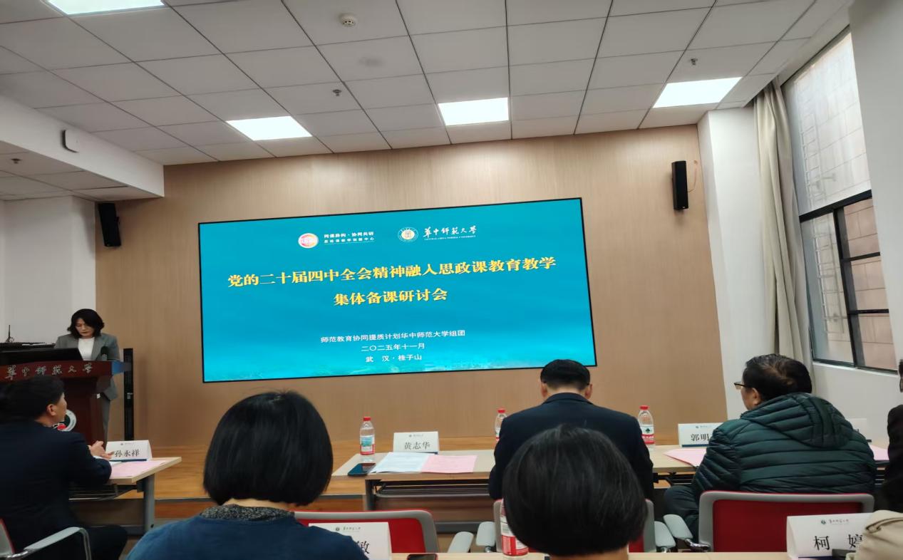 (本报讯) 2025年11月15日,荆楚大地秋意正浓,学术交流热情不减。为深入学习、贯彻落实党的二十届四中全会精神,并推动其融入思想政治理论课教学体系之中,华中师范大学组织开展党的二十届四中全会精神融入思想政治教育教学集体备课研讨会。 麻豆视频 习近平新时代中国特色社会主义思想教研室(以下简称“教研室”)全体教师参与此次教研活动。在专题研讨与交流环节,陈智会老师做主题发言。此次跨校教研活动不仅是一次思想的碰撞与智慧的汇聚,更是一次校际协同、共谋思政育人新篇的生动实践,取得了丰硕成果。