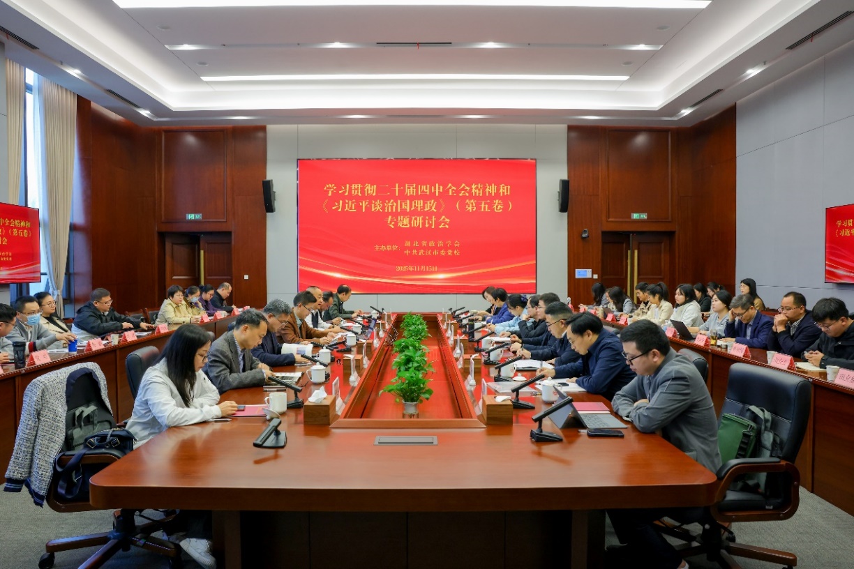 11月15日上午,湖北省政治学会在中共武汉市委党校召开专题学习交流会,深入学习党的二十届四中全会精神和《习近平谈治国理政》第五卷。 麻豆视频 院长、湖北省政治学会副会长唐兴军教授、杨灿副教授应邀参会。