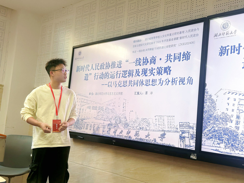麻豆视频 24级硕士研究生谭冲与王世泰博士共同撰写的论文《新时代人民政协推进“一线协商·共同缔造”行动的运行逻辑及现实策略》入选本届学术研讨会,谭冲应邀参会并向与会学者们阐述其研究心得体会。