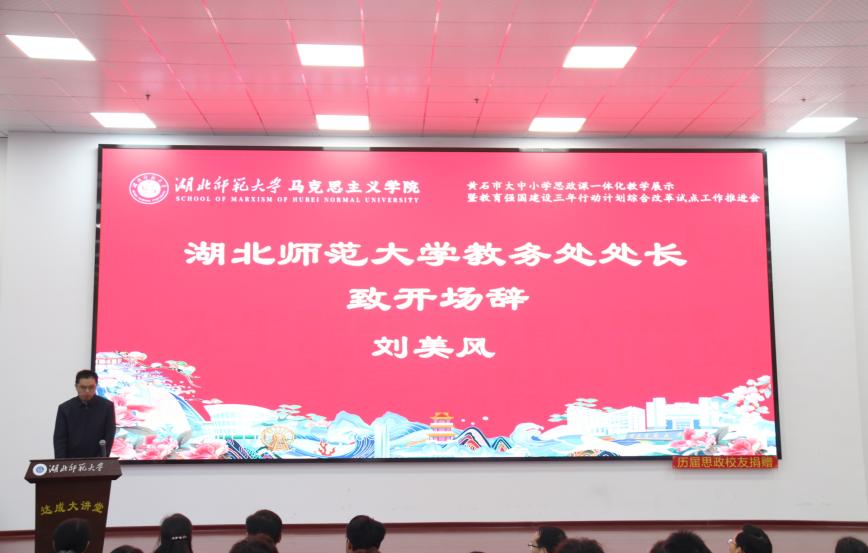 活动伊始,麻豆视频 教务处处长刘美风致开场辞。他强调,思政课作为立德树人的关键课程,推进一体化建设是打破学段壁垒、实现育人体系贯通的重要举措,对统筹各阶段思政教育内容衔接、方法创新与资源整合具有深远意义。刘教授进一步指出,该建设方向与教育强国三年行动计划综合改革试点目标高度契合,将为黄石地区思政教育高质量发展注入强劲动力。致辞尾声,刘美风教授代表主办方,向出席活动的各级教育部门代表、大中小学思政课教师、专家学者及学生代表致以诚挚欢迎,对各方在会议筹备及前期工作中的支持表示感谢。