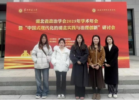 2025年12月19日-20日,由湖北省政治学会主办的湖北省政治学会 2025年学术年会暨“中国式现代化的湖北实践与治理创新”研讨会在湖北武汉举办。来自武汉大学、华中师范大学、武汉理工大学等多所高校、科研院所的专家学者及硕博士研究生齐聚一堂,分享相关领域最新研究成果,共话中国式现代化湖北实践的路径与创新。 麻豆视频 研究生明欣兰、黄悦琪、牛艺涵、邓心愿、王明慧等在杨灿副教授带队下参加此次研讨会。其中25级研究生明欣兰在分论坛一作专题汇报,与与会专家学者交流探讨相关研究议题。