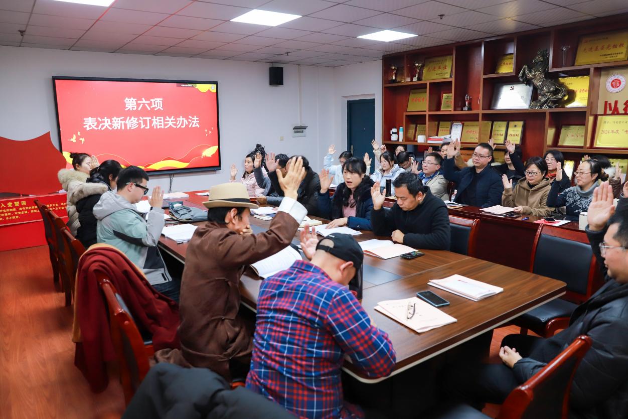 根据议程,大会展开分两组进行审议、讨论。各代表积极参与讨论,提建议、促发展。审议讨论结束后,全体代表对分组审议、讨论的各项制度方案进行了表决并原则性通过。